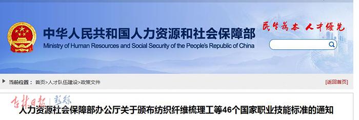 彩练新闻从人社部网站上获悉,近日,人社部颁布了纺织纤维梳理工等46个新版国家职业技能标准。此次颁布标准的46个职业,均属于《中华人民共和国职业分类大典(2015年版)》第六大类“生产制造及有关人员”,主要集中在纺织、轻工、印刷、冶金、机械、电力等生产制造领域。